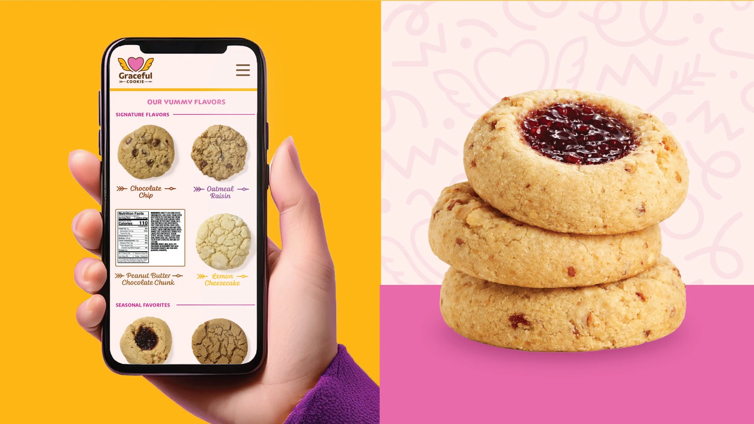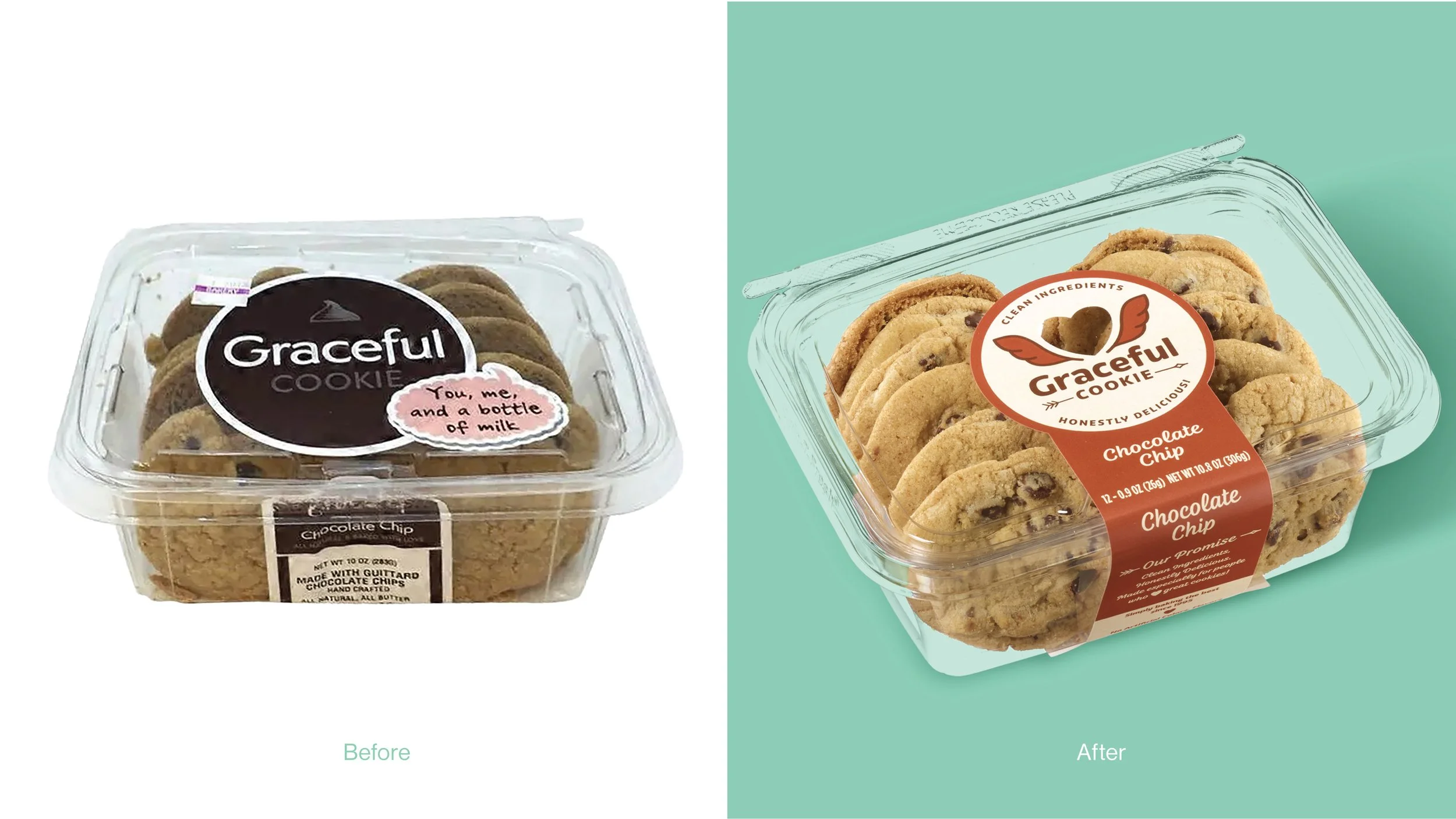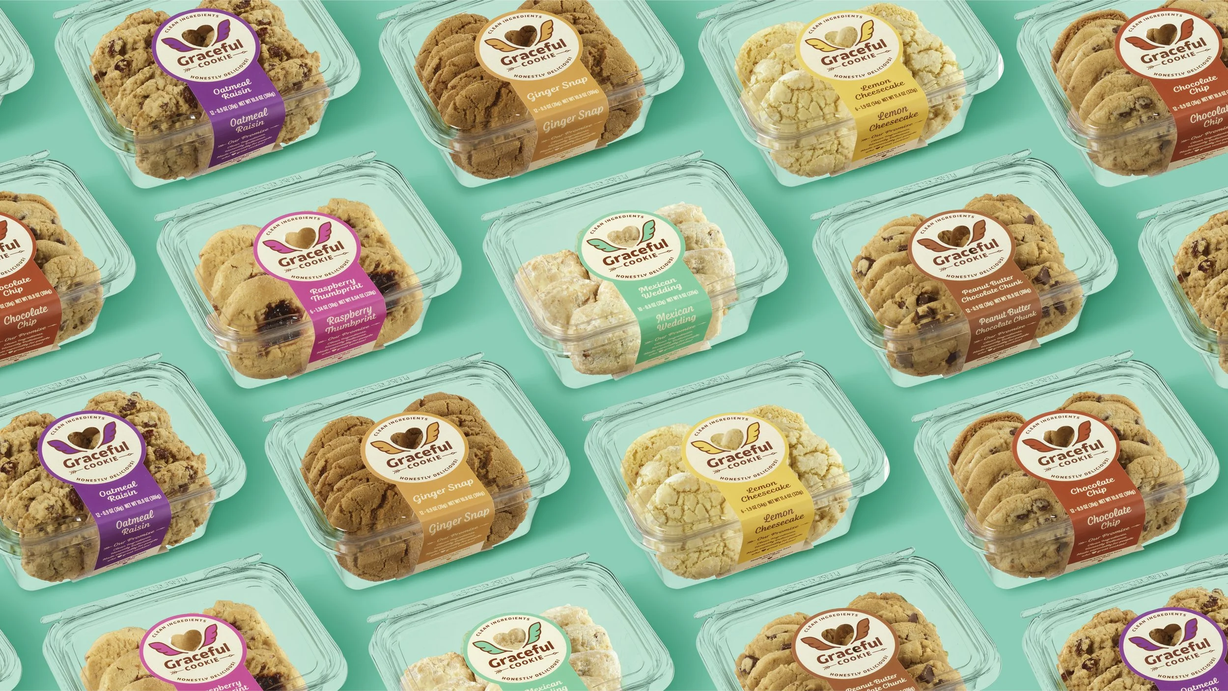 We reimagined Graceful Cookie with a bold, ownable identity rooted in love and purity. Centered around a heart with angel wings, the new mark brings to life the brand’s name “Graceful”, while subtly signaling clean, elevated ingredients. A cupid-inspired arrow underscores “Cookie,” reinforcing the universal truth that everyone loves a great cookie. Paired with a warm, modern color palette and flavor-coded packaging system, the redesign creates strong shelf impact, builds trust, and delivers a brand that feels as premium and joyful as the product inside.