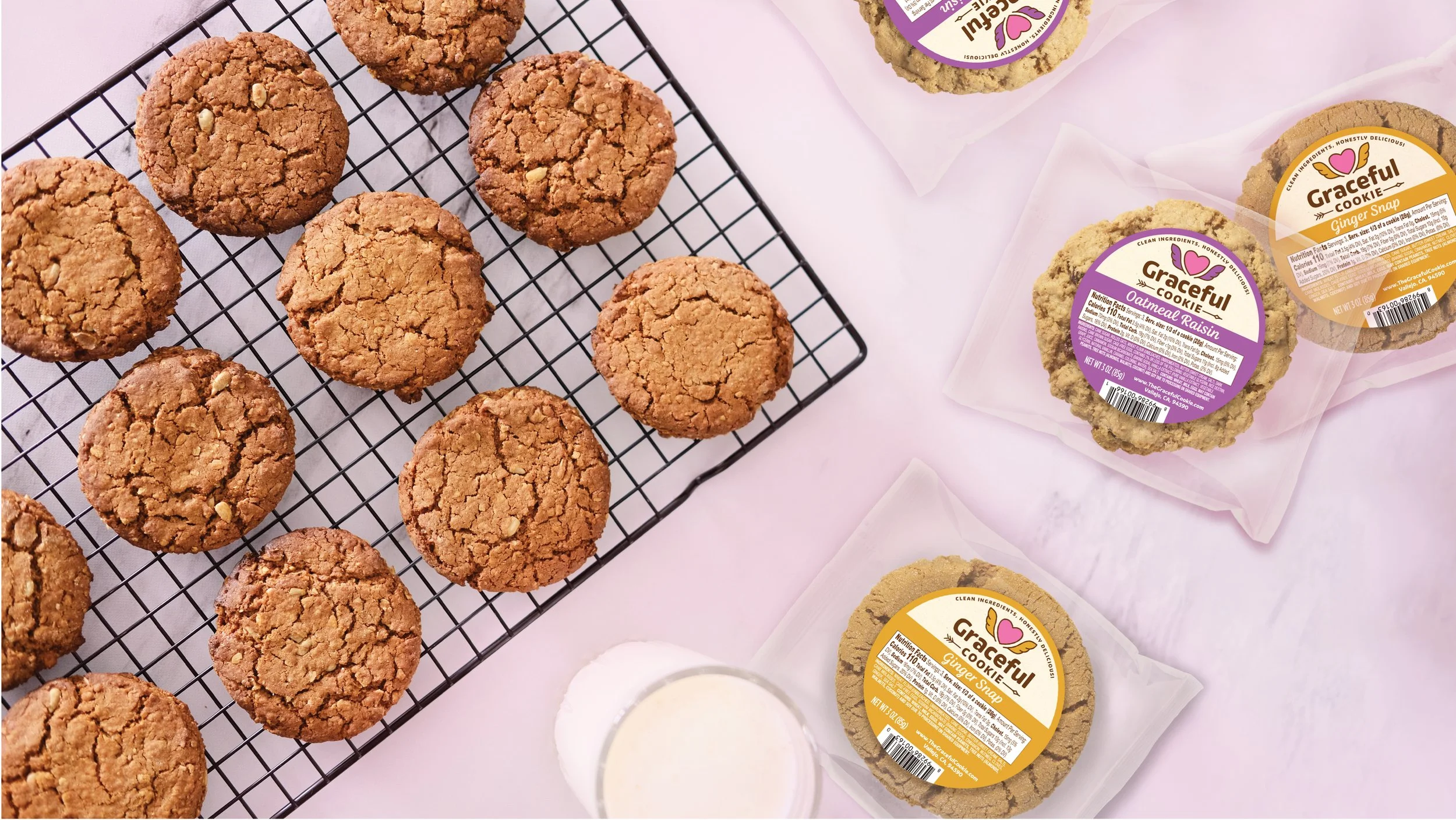 Graceful Cookie had built a loyal following with its clean, artisan recipes, but its packaging lacked the presence and professionalism needed to compete at retail. On shelf, the brand felt inconsistent and unrefined—more like a homemade label than a scalable, trustworthy product line. As the company prepared to expand distribution, it needed a cohesive identity that would stand out among national competitors while clearly communicating its core attributes: clean ingredients, honest recipes, and undeniably delicious flavors.
